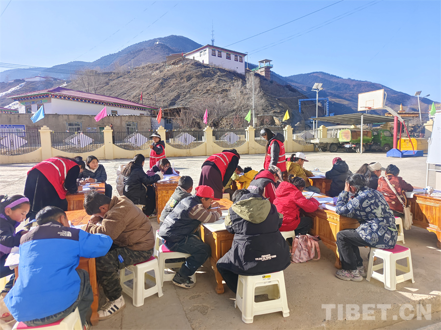 圖為西藏洛隆縣組織返鄉(xiāng)大學(xué)生對孩子們進(jìn)行針對性輔導(dǎo)