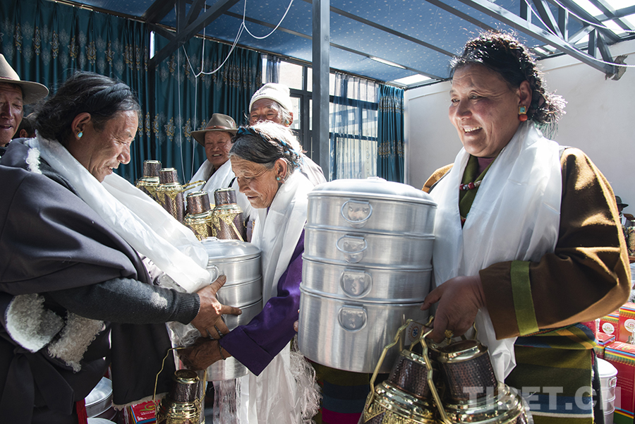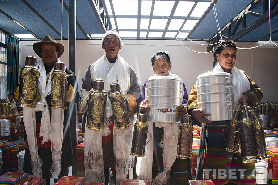 “因受地震的影響,今年的分紅儀式與以往相比簡單一些。我們村兩委經(jīng)過商議,決定用今年的村集體收入為每戶購置多功能蒸鍋、銅壺等作為‘分紅’。一方面,因為大家現(xiàn)在都在安置板房里生活,這些物品對于村民來說實用性更強;另一方面,銅壺也有一定的裝飾作用,為村民簡單的板房內(nèi)增添了一份像樣的‘家具’?!贝妩h支部書記旺加布說。