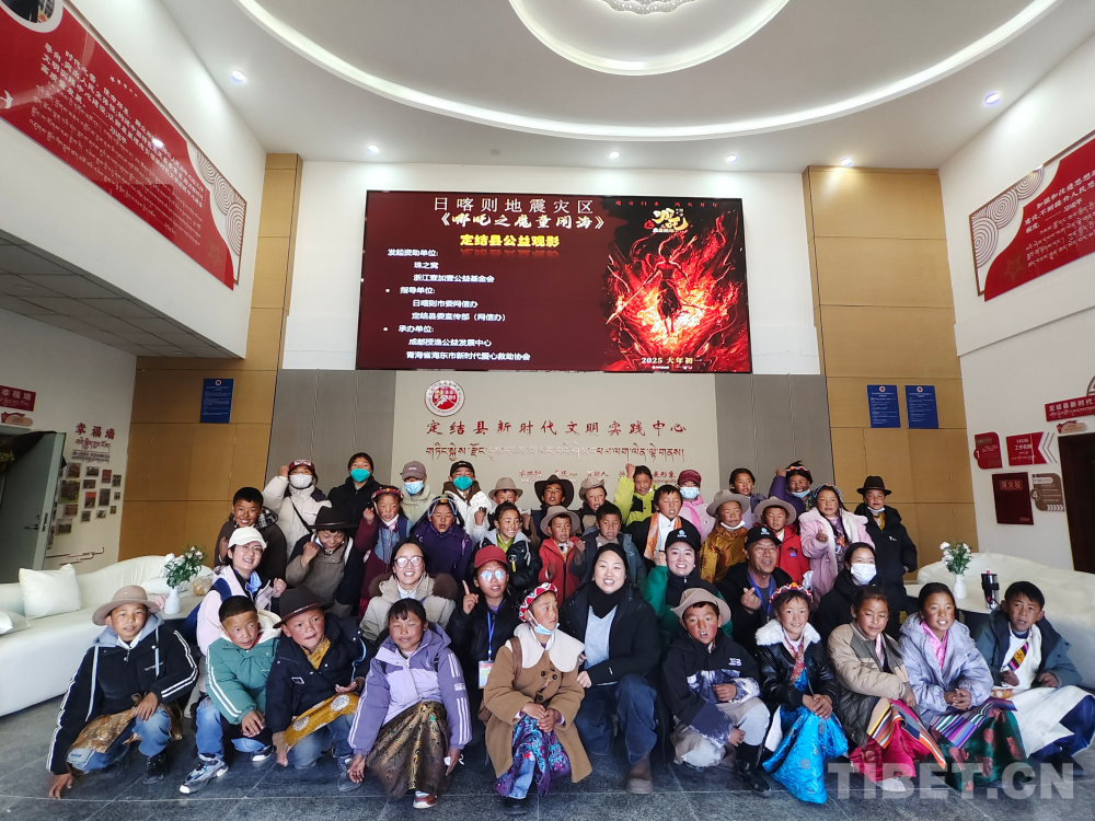 圖為“壹加壹·新時(shí)代愛心”兒童之家?guī)ьI(lǐng)楚卡村兒童觀看《哪吒2》