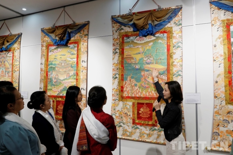 圖為觀眾們仔細(xì)聆聽唐卡背后的故事