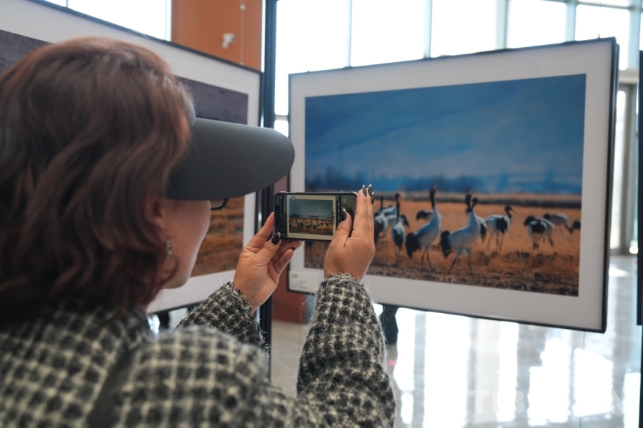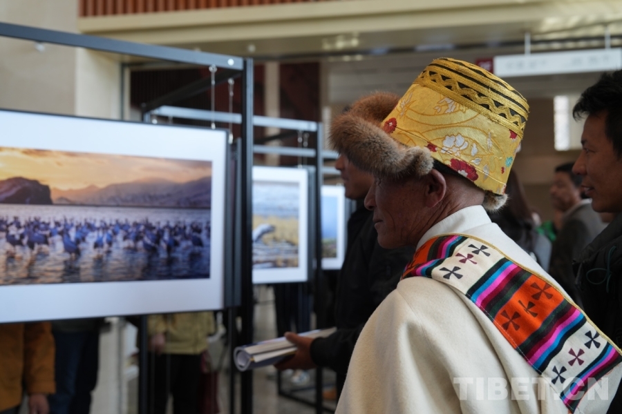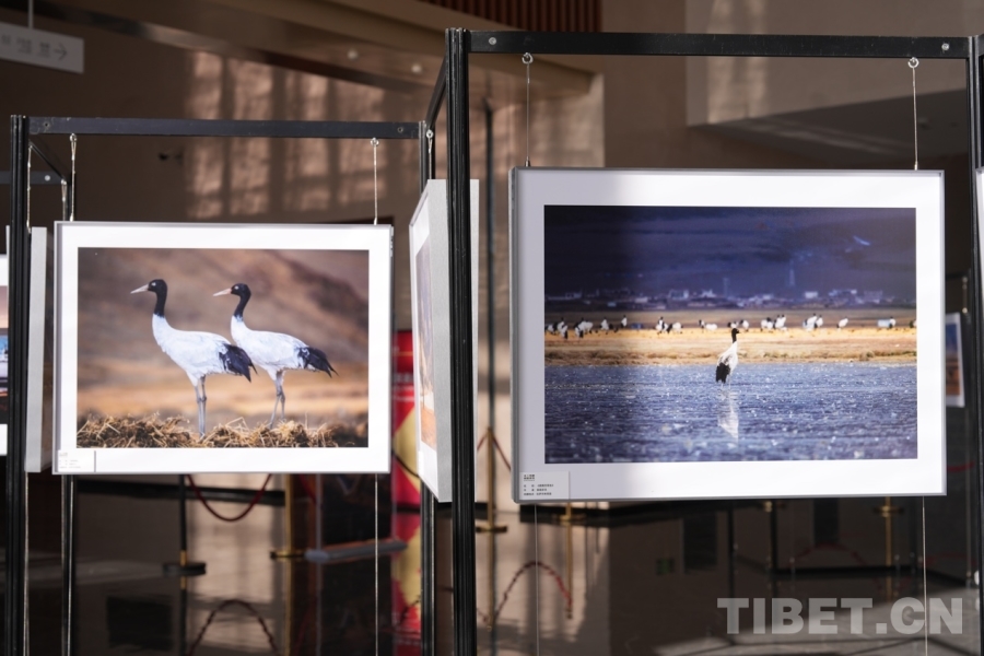 開幕式后,嘉賓們參觀了攝影展,近距離欣賞黑頸鶴與雪山、湖泊、草原共生共榮的美好瞬間,感悟西藏生態(tài)與人文的和諧之美。(中國西藏網 記者/德吉卓瑪 旦曲)