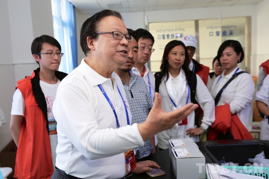 圖為2016年“同心·共鑄中國心”四川甘孜行活動中,郎景和院士(前排左三)在四川省甘孜州道孚縣指導當?shù)蒯t(yī)務工作者 北京同心共鑄公益基金會供圖