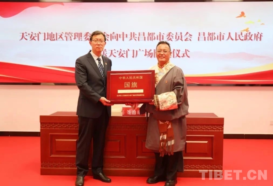 這面由北京市人民政府天安門地區(qū)管理委員會向昌都市委、市政府贈送(編號2020—0094)的天安門廣場國旗,在西藏自治區(qū)成立60周年和昌都解放75周年前夕,從首都北京來到了邊疆,極大激發(fā)了昌都全市上下的愛國榮譽(yù)感和強(qiáng)國使命感,激勵各族干部群眾砥礪前行、感恩奮進(jìn)。(中國西藏網(wǎng) 記者/王茜 陳衛(wèi)國)
