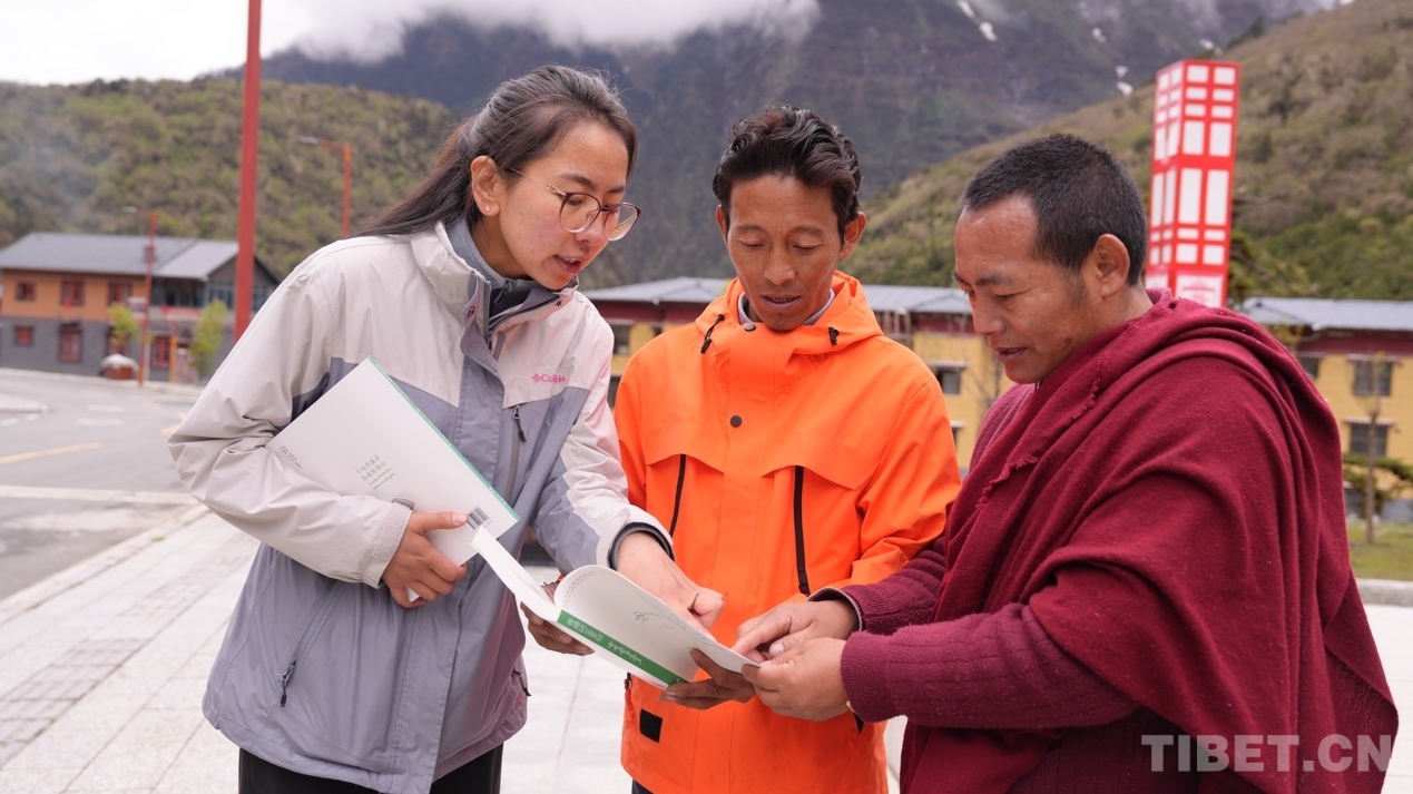 圖為西藏自治區(qū)藏語(yǔ)委辦(編譯局)工作人員為玉麥鄉(xiāng)群眾指導(dǎo)學(xué)習(xí)方法