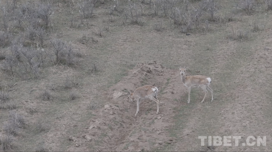 圖為無人機(jī)捕捉到的兩只雄性普式原羚 青海省文化和旅游廳供圖