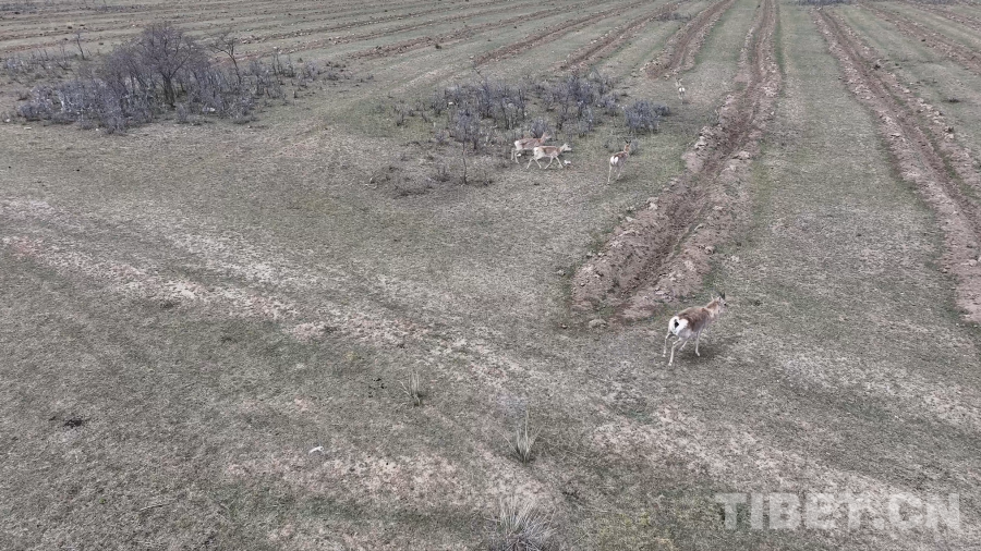 圖為無人機(jī)捕捉到的珍貴的野生普式原羚影像,奔跑時,尾部標(biāo)志性的“心形白斑”清晰可見 青海省文旅廳供圖