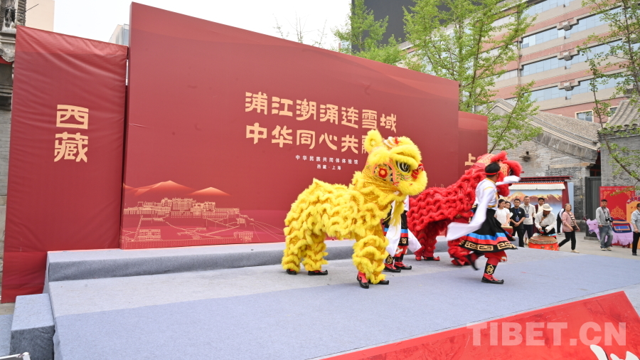 圖為西藏自治區(qū)昌都市洛隆縣文藝代表團在蒙藏學(xué)校舊址表演碩督獅子舞