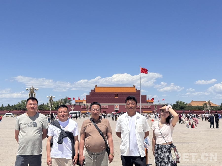 圖為西藏自治區(qū)昌都市洛隆縣文藝代表團在天安門廣場合影