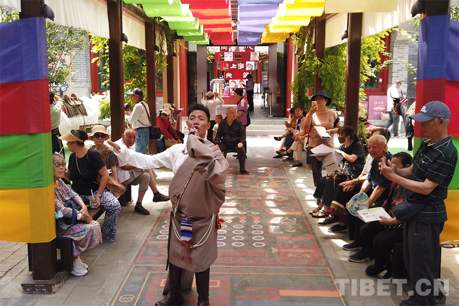 圖為那曲歌手拉日多布在中華民族共同體體驗館內(nèi)一展歌喉 攝影:楊月云