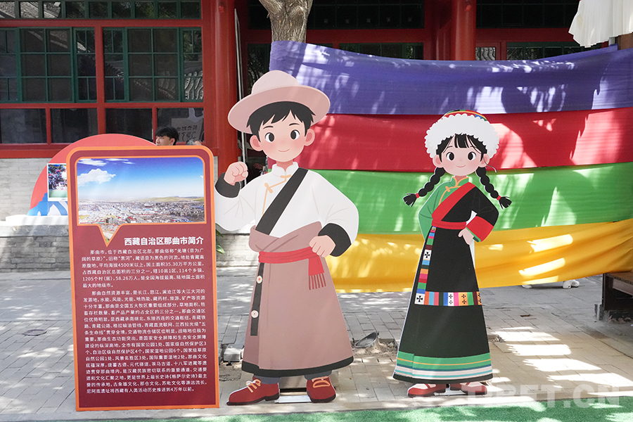 圖為中華民族共同體體驗館內(nèi),那曲市輪展現(xiàn)場的人形立牌 攝影:周晶