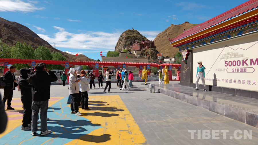 日喀則市拉孜縣強公村位于318國道5000公里處,這里是游客們前往珠峰景區(qū)的必經(jīng)之地,也被稱為“3185旅游服務區(qū)”。日前,記者在這里看到,有大批游客選擇在村口的318國道5000公里紀念碑前打卡。