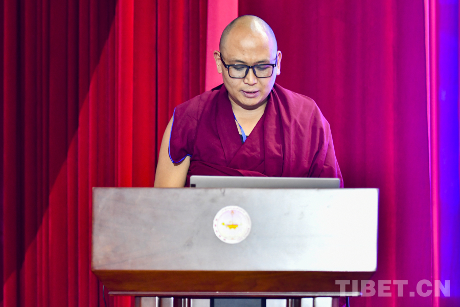 來自西藏佛學(xué)院的經(jīng)師阿旺桑珠作了題為《著<辨了不了義論>的歷史背景及其影響》的報告,以探討《辨了不了義論》的創(chuàng)作環(huán)境與歷史背景為起點,論述該經(jīng)典從主題到用語,都以推動藏傳佛教健康發(fā)展為出發(fā)點,承擔(dān)起從了義、不了義角度闡釋佛教教義的重任,填補了藏傳佛教此前沒有相關(guān)著作的空白。