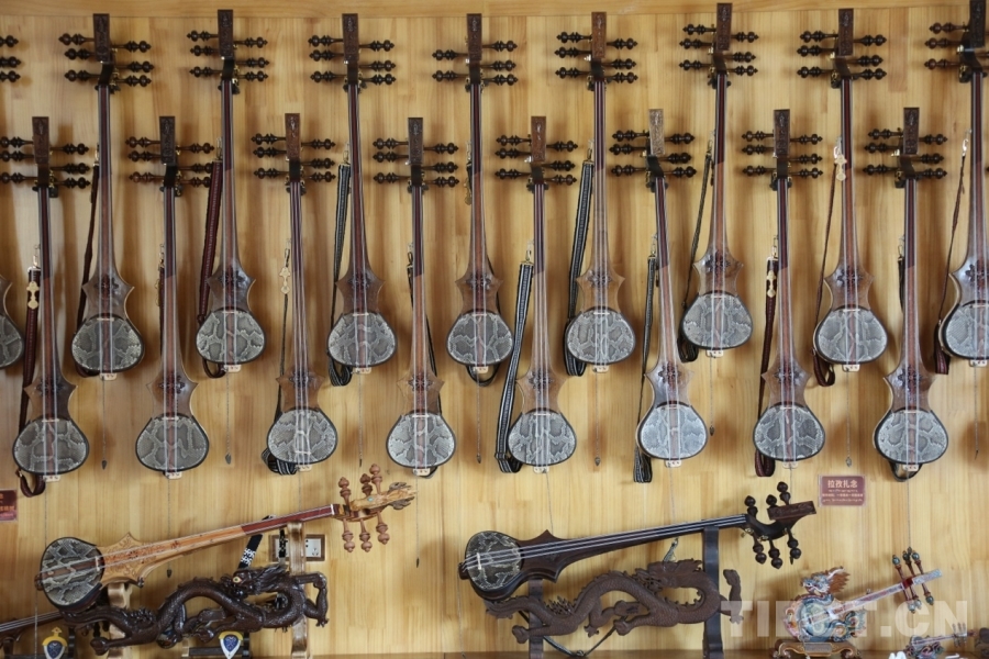 作為“堆諧之鄉(xiāng)”拉孜縣的代表性樂(lè)器,扎念琴制作已有數(shù)百年歷史。合作社負(fù)責(zé)人頓加介紹,一把純手工扎念琴需選用楊木做共鳴箱、花梨木制琴桿,經(jīng)過(guò)刨削、雕鏤、蒙皮等20余道工序,一個(gè)人耗時(shí)6天左右方能完成。“琴頭雕馬象征吉祥,背面‘巴絡(luò)'凸紋既美觀又防滑,這些都是祖輩傳下的智慧。”如今,這項(xiàng)非遺技藝通過(guò)“致富帶頭人+合作社+農(nóng)戶”模式,年生產(chǎn)扎念琴超500把,帶動(dòng)社員人均年收入達(dá)4.5萬(wàn)元。
