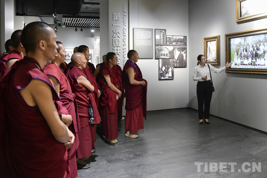 圖為西藏佛學(xué)院師生在嘉興南湖革命紀(jì)念館參觀了解中國共產(chǎn)黨建黨初期歷史 攝影:趙振宇