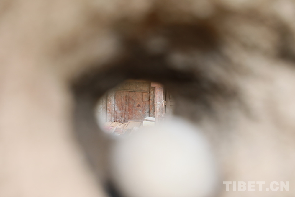 圖為位于四川省甘孜州鄉(xiāng)城縣青德鎮(zhèn)布機(jī)村的宗薩木府的古老夯土女兒墻上存留著正對(duì)大門的射擊孔,這樣的射擊孔還有多處,是當(dāng)年這座高大建筑的安保系統(tǒng) 攝影:劉莉