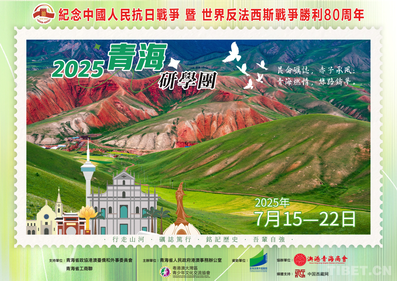 中國西藏網(wǎng)訊 為傳承和弘揚偉大抗戰(zhàn)精神,促進青澳兩地人文交流,7月15至22日,“紀(jì)念中國人民抗日戰(zhàn)爭暨世界反法西斯戰(zhàn)爭勝利80周年——2025青海研學(xué)團”將赴青海開展研學(xué)活動。