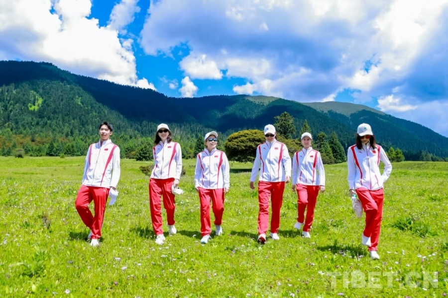 圖為奧運冠軍走進(jìn)魯朗鎮(zhèn)高山牧場,被牧場風(fēng)光深深吸引