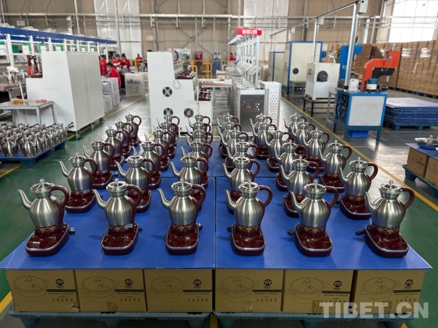 圖為剛出廠的全自動(dòng)智能酥油茶壺
