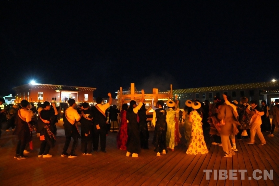 圖為身著藏裝的香港學(xué)生們圍著篝火跳舞 攝影:王茜