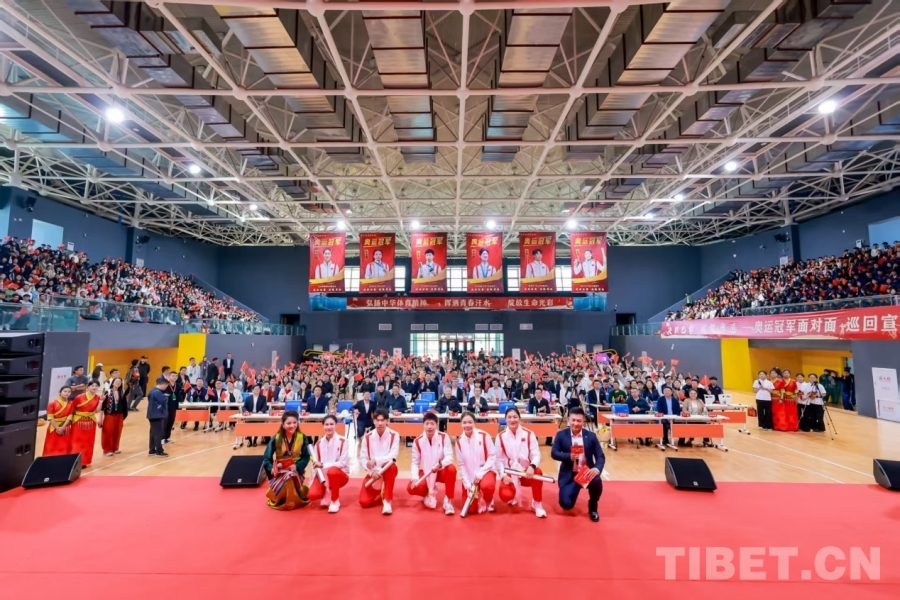 當天上午,奧運冠軍馬龍(乒乓球)、龍道一(跳水)、陳清晨(羽毛球)、李倩(拳擊)、郭崎琪(藝術體操)等走進西藏藏醫(yī)藥大學,受到師生們的熱烈歡迎。