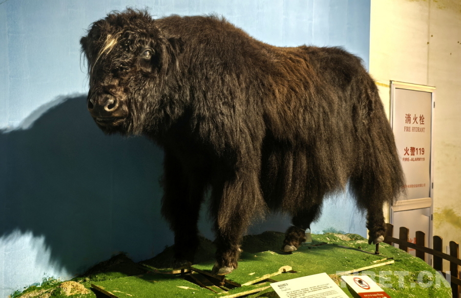 圖為西藏牦牛博物館收藏的罕見無角牦牛標(biāo)本。這種無角牦牛被牧民稱為“雍拉牦牛”。據(jù)了解,牦牛天生無角的概率約為十萬分之一 攝影:劉莉