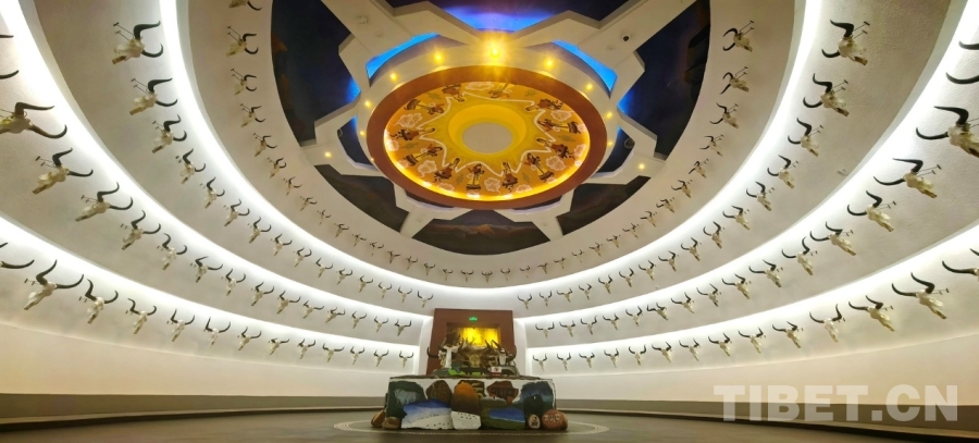 圖為西藏牦牛博物館內(nèi),陳設(shè)著來自各地的牦牛頭骨及它們故事的展廳 攝影:劉莉