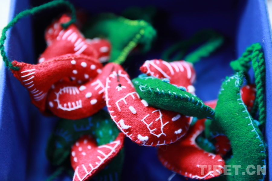 達(dá)娃片多介紹,店里大部分商品都是一針一線的純手工作品,制作者是來(lái)自西藏各地的群眾。公司會(huì)派出老師到西藏各地為群眾進(jìn)行手工藝品制作培訓(xùn),并提供原材料和手工藝品訂單,從而形成手工藝品產(chǎn)銷合作關(guān)系,幫助群眾增加收入。經(jīng)過(guò)近20年的堅(jiān)持和探索,現(xiàn)在已經(jīng)有500多位西藏各地女性參與制作。