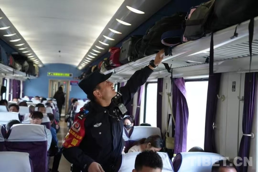 “看好自己的包!貴重物品貼身保管,不要大意了?!薄巴砩纤X(jué),各位一定要蓋好被子,高反很?chē)?yán)重!”……拉薩鐵路公安處乘警米瑪次仁的“碎碎念”,是高原列車(chē)上最動(dòng)聽(tīng)的序曲。他的腳步在車(chē)廂過(guò)道里來(lái)回穿梭,一句句叮囑如同細(xì)密的針腳,慢慢織進(jìn)旅客的旅途里。