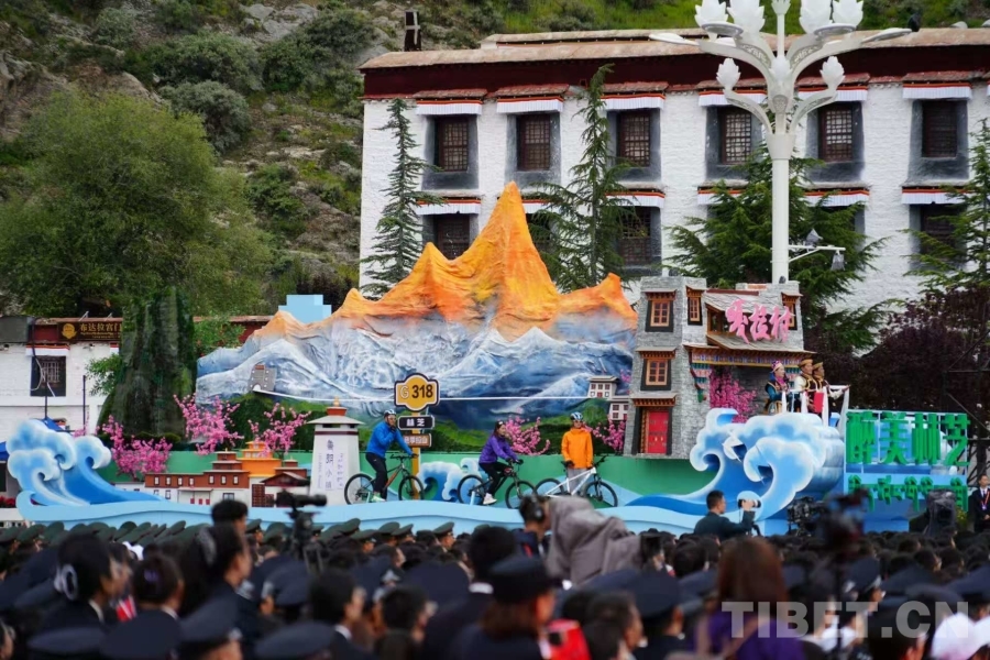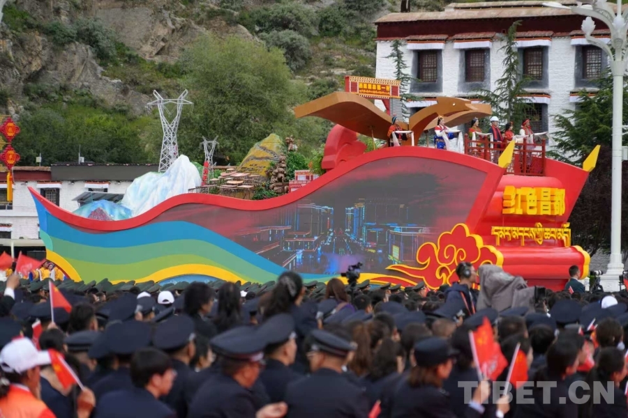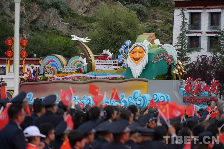中國西藏網(wǎng)訊 西藏自治區(qū)成立60周年慶祝大會(huì)于8月21日上午10時(shí)在拉薩隆重舉行。西藏自治區(qū)七地市靚麗的主題彩車與歡歌勁舞的方隊(duì)以濃郁的地方特色令現(xiàn)場(chǎng)觀眾歡呼不斷。(中國西藏網(wǎng) 記者/王淑 馮重霖 劉莉 趙釗 姚浩然 楊眉笑 德吉卓瑪 趙振宇 賈華加 邊子捷 次旦拉姆 旦曲)
