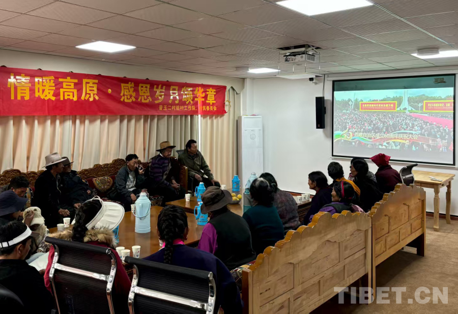 中國西藏網訊 在西藏自治區(qū)成立60周年的喜慶日子里,西藏自治區(qū)昌都市邊壩縣普玉二村農村幸福苑內歡聲笑語、其樂融融。駐村工作隊舉辦“情暖高原·感恩歲月頌華章”主題慶?;顒樱謇仙贇g聚一堂,共同觀看西藏自治區(qū)成立60周年慶祝大會盛況,感受輝煌時刻。