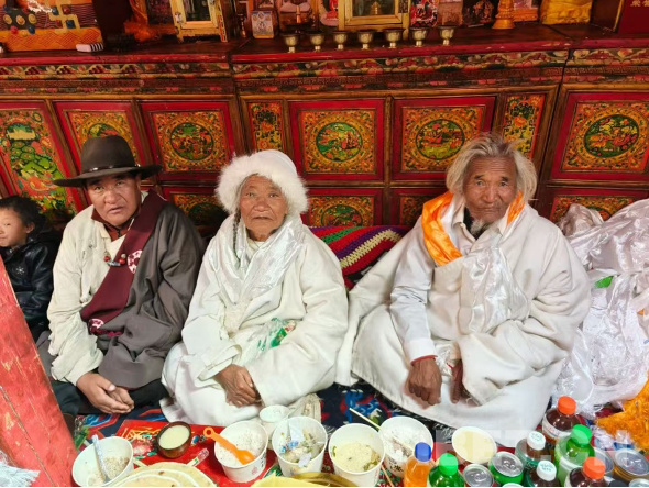 我們家孩子多,年齡都只差一兩歲。媽媽常常懷里抱著才幾個(gè)月大的弟弟,背上還背著剛滿一歲的另一個(gè),就這樣去公社勞動(dòng)。那時(shí)我七歲,老二六歲,日子過得特別苦。我們只有一頂又小又舊的黑帳篷,白天我們就待在帳篷里等。父母放羊回來,有時(shí)我們?cè)缫言诘厣纤恕3缘臇|西也很簡(jiǎn)單,只有糌粑,喝的也只是用羊奶做成的奶渣水。現(xiàn)在孩子們稍微冷一點(diǎn)就會(huì)抱怨衣服不夠暖,可那時(shí)候,我們連像樣的衣服都穿不上。雖然家里人多,但真正能勞動(dòng)的少,孩子又都還小。公社按工分分配,我們家不僅掙不夠,還常常欠下不少。一想到父母當(dāng)年受的那些苦,我心里就特別不是滋味。如今只要吃到好吃的,我第一個(gè)想到的就是父母;見到好穿的,第一個(gè)念頭也是他們,總想讓他們也嘗一嘗、穿一穿。