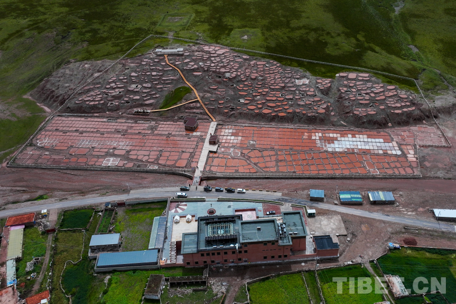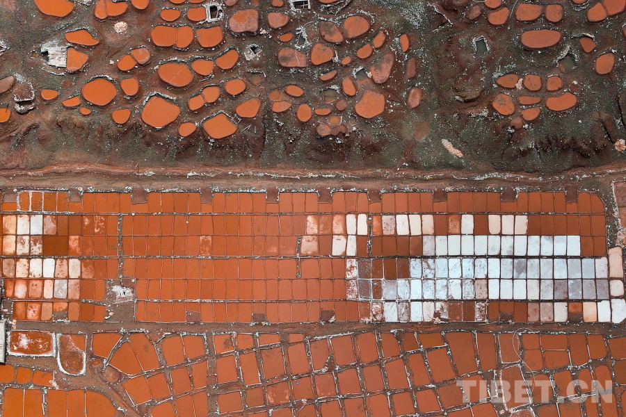 圖為航拍白扎鹽場,這種紅褐色的顏色來自附近山體中所含的礦物質(zhì) 攝影:薛蒂