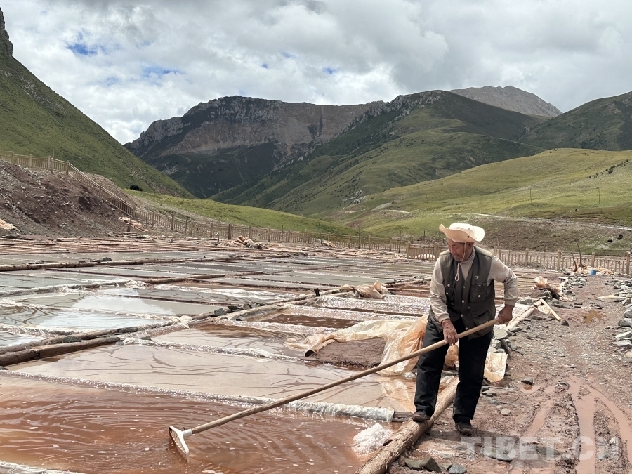 鹽田里,78歲的江羊巴桑正彎腰勞作,傳承著千年不變的制鹽技藝。江羊巴桑是白扎鹽場的一名鹽工,鹽是他們一家人賴以生存的東西,父輩靠鹽養(yǎng)活了他,他也靠著鹽養(yǎng)大了自己的十一個(gè)孩子。這位老鹽工曾在綜藝節(jié)目《種地吧》向觀眾展示了當(dāng)?shù)厝斯欧ㄖ汽}的智慧。他在節(jié)目中表示:“為了養(yǎng)活一家老小,從小就開始制鹽,一直干到現(xiàn)在。以后無論是我的兒子,還是這個(gè)地區(qū)的年輕人,希望未來可以學(xué)習(xí)并延續(xù)好這一制鹽技藝?!苯虬蜕:唵味鎿吹脑竿?,就是希望這種傳統(tǒng)的手工制鹽能夠代代相傳。