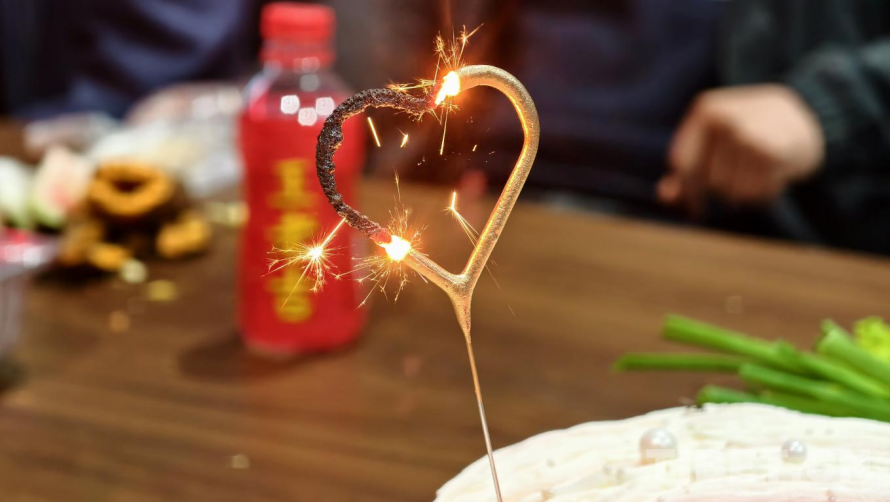 圖為在正在燃燒的愛心蠟燭點(diǎn)亮七夕活動(dòng)