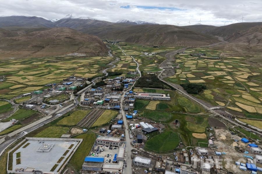圖為航拍薩迦鎮(zhèn)薩木林村