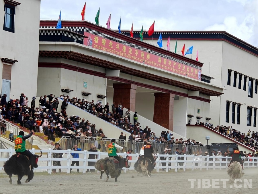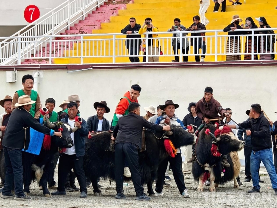江孜達瑪節(jié)是當地重要的傳統(tǒng)節(jié)日之一,賽牦牛作為節(jié)日的項目,深受群眾喜愛。比賽中,牦牛在騎手的指引下奮蹄奔騰,場面震撼,引得觀眾驚呼連連、掌聲不斷。這一傳統(tǒng)體育活動不僅展現了當地農牧民精湛的馴牛技藝和勇敢精神,也豐富了群眾的文化生活。(中國西藏網 記者/次旦拉姆)