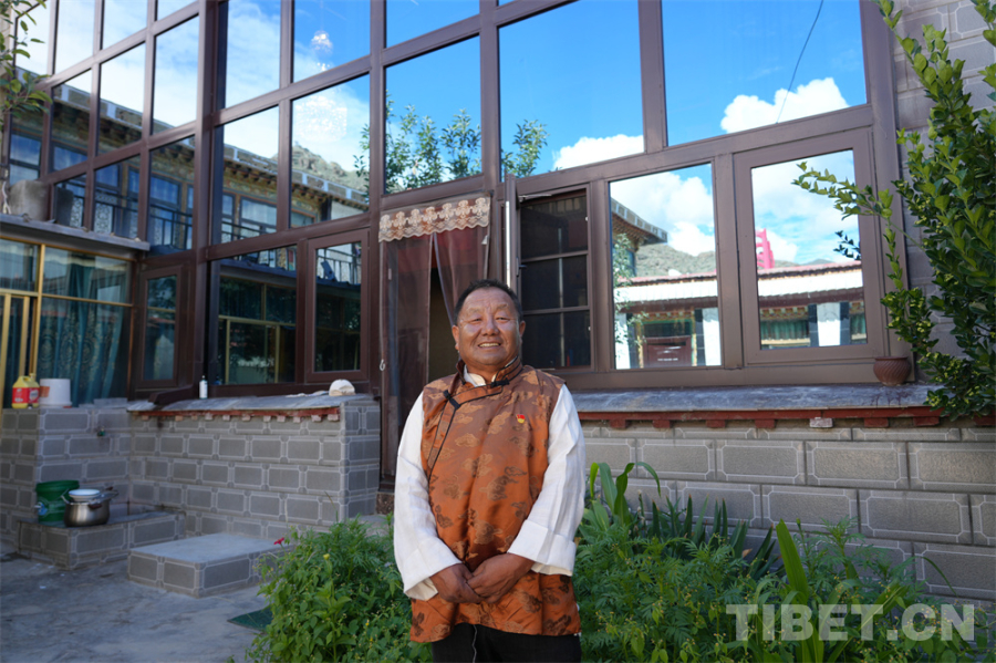 走進(jìn)西藏拉薩市曲水縣曲水鎮(zhèn)茶巴朗村黨委書記其加的院子,花草繁茂、干凈整潔,幾只雪白的小狗正歡快地?fù)u著尾巴跑來跑去。面前的兩層藏式小樓寬敞明亮,裝修精美,家電齊全,陽光棚上安裝著電動的拉簾。門側(cè)建有洗漱間,干濕分離,還有大大的浴缸。