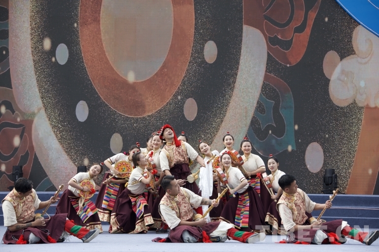 圖為開(kāi)幕式上的歌舞表演《歡騰的高原》 攝影:龍真多吉