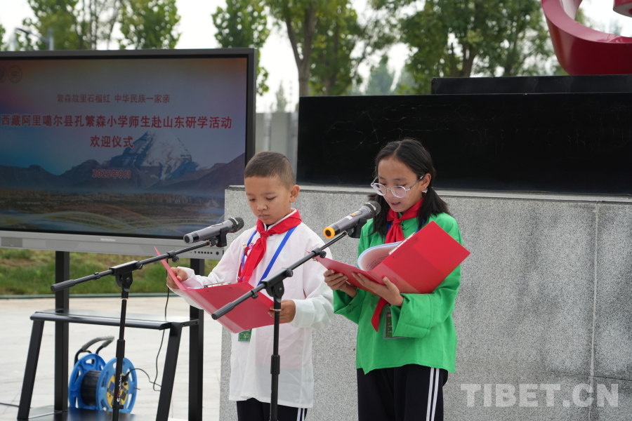 中國(guó)西藏網(wǎng)訊 魯藏同心,情系千里。2025年9月21日上午,以“繁森故里石榴紅 中華民族一家親”為主題的西藏阿里噶爾縣孔繁森小學(xué)師生赴山東研學(xué)歡迎儀式在孔繁森精神教學(xué)基地紅石榴廣場(chǎng)舉行。來(lái)自西藏阿里地區(qū)的20名師生與山東聊城的孔繁森精神傳承者們共聚一堂,通過(guò)一場(chǎng)跨越海拔4500米的深情對(duì)話,詮釋了中華民族共同體意識(shí)的深刻內(nèi)涵。