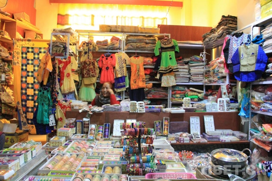 走進市場,濃郁的尼泊爾風格迎面而來。精致生動的手工藝品、各色各樣的尼泊爾服飾、夸張華美的首飾、風味多樣的香制品,構(gòu)成了極具特色的商業(yè)品類。尤其是手工藝品,一個一價,各個不同,甚至有些瑕疵也不耽誤有顧客欣然購入。在這里,咖喱、巧克力、鍋具、糧食等生活用品也能買到,品類不可謂不豐富。尼泊爾店主們各有生意經(jīng),他們用不同的語言與不同的客戶交流,推銷著自己的特色商品,在討價還價中逐漸適應(yīng)在異國經(jīng)商,適應(yīng)普蘭,適應(yīng)現(xiàn)在安穩(wěn)滿足的生活。