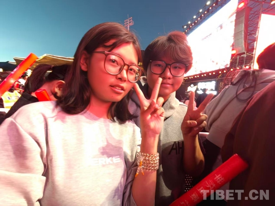 在她身旁的是兩位來自西藏大學(xué)的學(xué)生——米瑪倉覺和她的朋友旦增措姆。她們?cè)诮邮懿稍L時(shí)表示,如今拉薩這類文化活動(dòng)越來越多,只要有空她們就會(huì)參加?!斑@樣的場(chǎng)合不僅能見到喜歡的歌手,也讓我們?cè)谛@生活之外學(xué)到新東西,我們非常喜歡?!泵赚攤}覺說道。
