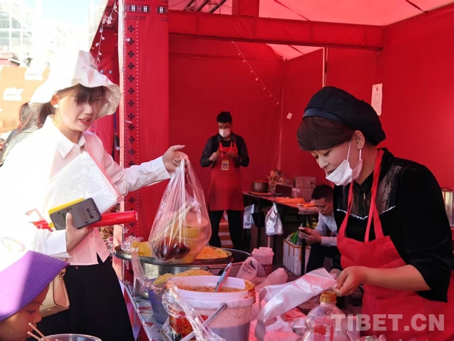 圖為觀眾在活動(dòng)現(xiàn)場(chǎng)的小吃攤位購買小吃