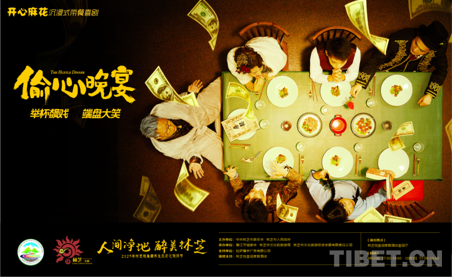 中國西藏網(wǎng)訊 當(dāng)喜劇藝術(shù)邂逅高原風(fēng)情,一場別開生面的文化盛宴在林芝精彩上演。9月30日晚,開心麻花沉浸式互動喜劇《偷心晚宴》在西藏林芝完成首演,為2025雅魯藏布生態(tài)文化旅游節(jié)增添了一抹亮色,也標(biāo)志著林芝文旅融合邁出新步伐。