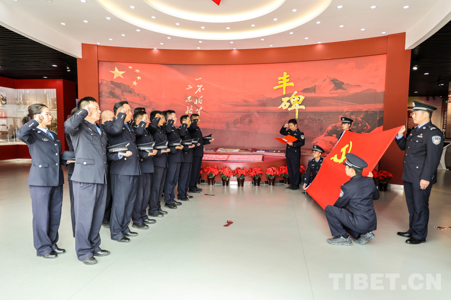 隨后,在領誓人的帶領下,全體黨員民警高舉右拳,重溫入黨誓詞:“我志愿加入中國共產(chǎn)黨,擁護黨的綱領……”鏗鏘有力的誓言回蕩在拉薩烈士陵園上空。(中國西藏網(wǎng) 通訊員/黃飛)