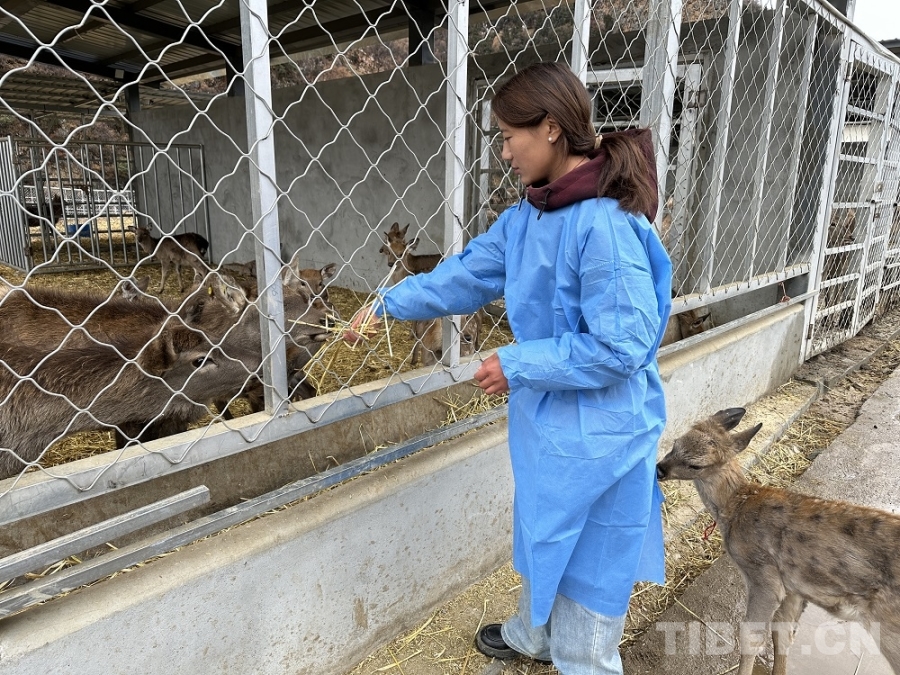 格桑卓姆,一位2003年出生的本地姑娘,今年7月剛從西藏農(nóng)牧大學(xué)動(dòng)物科學(xué)專業(yè)畢業(yè),如今在養(yǎng)殖場(chǎng)負(fù)責(zé)鹿的日常管理?!疤貏e感謝黨和政府給我們這么好的機(jī)會(huì),就在自己家門口就業(yè),比較方便?!备裆W磕返哪樕涎笠缰鴿M足的笑容。她的家就在離養(yǎng)殖場(chǎng)不遠(yuǎn)的加興村。