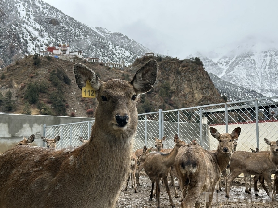 中國(guó)西藏網(wǎng)訊 車輛經(jīng)過(guò)數(shù)小時(shí)的跋涉,沿著土石山路一路顛簸,我們終于抵達(dá)海拔4000米的西藏第一家規(guī)模化高原生態(tài)養(yǎng)鹿基地:工布江達(dá)縣娘蒲鄉(xiāng)梅花鹿養(yǎng)殖基地。皚皚白雪中,一群毛色華美、體態(tài)優(yōu)雅的梅花鹿正悠閑踱步,與遠(yuǎn)方的雪山、近處的牧舍構(gòu)成一幅動(dòng)人的生態(tài)畫卷。