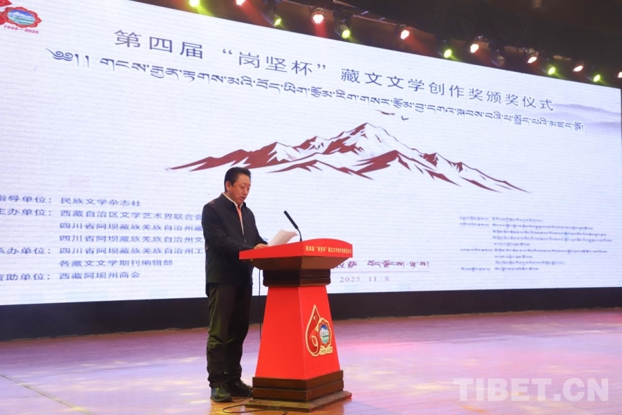頒獎(jiǎng)儀式上,西藏文聯(lián)黨組成員、副主席、西藏作協(xié)主席次仁羅布,阿壩州文聯(lián)黨組書記、主席、阿壩州作協(xié)主席阿郎,《民族文學(xué)》主編陳亞軍分別致辭。他們一致表示,“崗堅(jiān)杯”的持續(xù)舉辦為藏文文學(xué)傳承發(fā)展注入強(qiáng)勁動(dòng)能,在推動(dòng)民族文學(xué)守正創(chuàng)新、促進(jìn)各民族交往交流交融中發(fā)揮著重要作用,勉勵(lì)廣大藏文文學(xué)工作者堅(jiān)守文化自信、聚焦時(shí)代主題、深植生活土壤,創(chuàng)作出更多有筋骨、有溫度、有格調(diào)的精品力作,為建設(shè)社會(huì)主義文化強(qiáng)國貢獻(xiàn)民族文學(xué)力量。