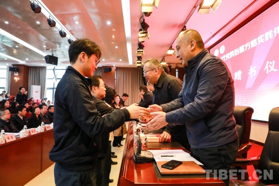 在贈書儀式前,西藏自治區(qū)黨委黨校(區(qū)行政學(xué)院)副校(院)長仁欽旺杰介紹了《新時(shí)代黨的治藏方略研究》出版情況,四川師范大學(xué)教授孫勇圍繞該書展開點(diǎn)評。該書是全面系統(tǒng)闡釋新時(shí)代黨的治藏方略的理論著作,為新時(shí)代黨的治藏方略研究注入新的活力與動力,具有重要的理論價(jià)值和現(xiàn)實(shí)意義。