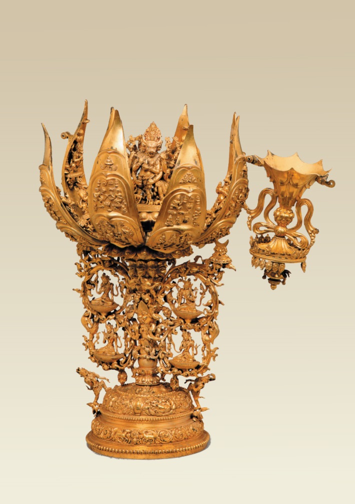 銅鎏金“大明永樂年施”款大威德金剛八瓣蓮花像,布達拉宮藏。布達拉宮管理處供圖