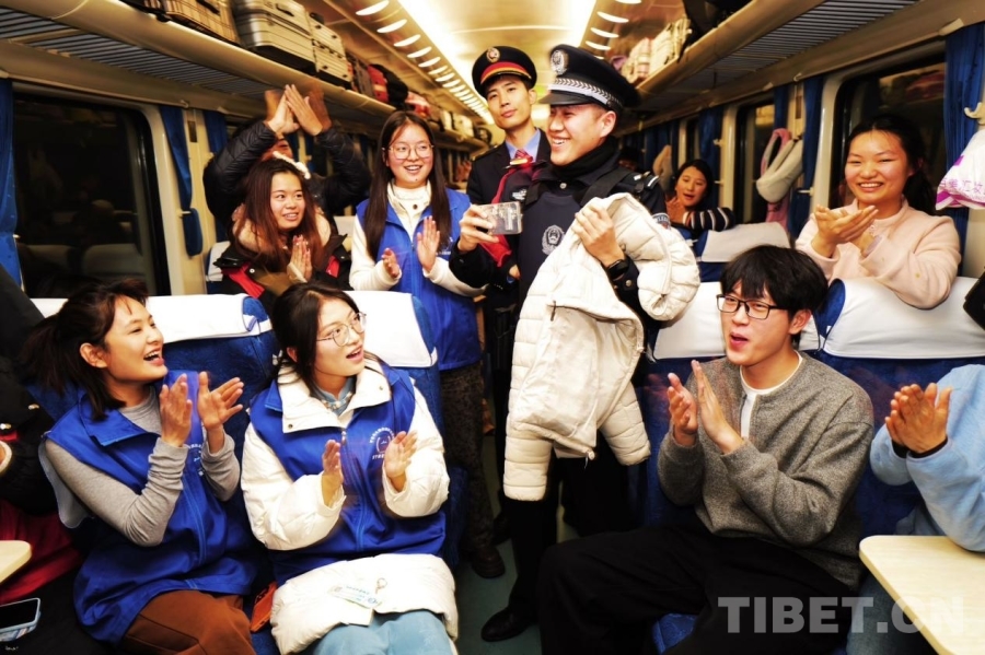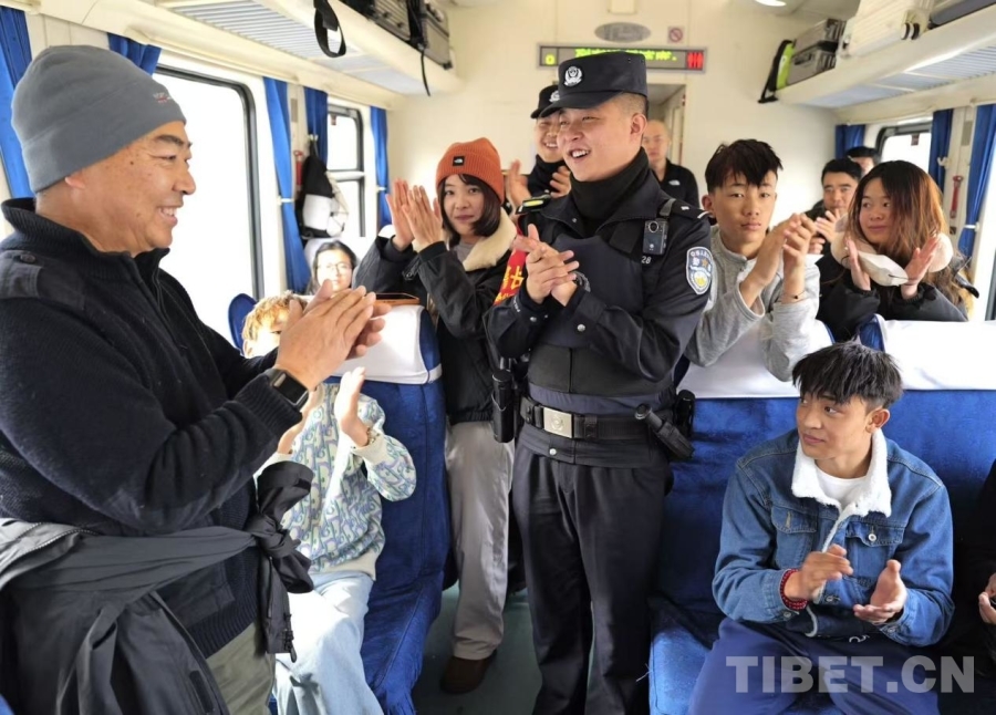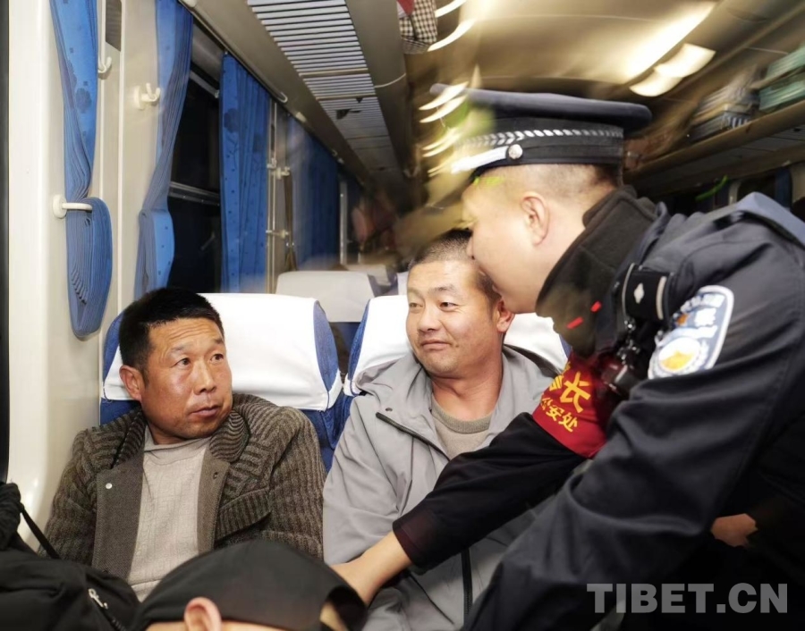 中國(guó)西藏網(wǎng)訊 1月20日,學(xué)生寒假返程高峰,青藏鐵路公安局西寧公安處乘警支隊(duì)在Z264次(廣州白云—拉薩)列車上,全力守護(hù)學(xué)子平安返鄉(xiāng)。同時(shí),乘警結(jié)合長(zhǎng)途出行特點(diǎn),以案說(shuō)法講解防盜技巧,緩解乘客旅途中的緊張情緒,讓千里歸途暖意融融。